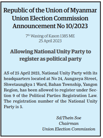 Republic of the Union of Myanmar Union Election Commission Announcement 14/2026