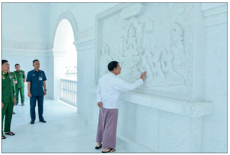 CHAIRMAN of the State Administration Council Prime Minister Senior General Min Aung Hlaing yesterday morning inspected the progress in the construction of the Maravijaya Buddha Image in the Maravijaya Buddha Park in Dekkhinathiri Township of Nay Pyi Taw.