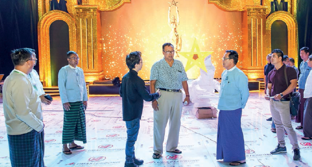 UNION Information Minister U Maung Maung Ohn in the capacity of Chairman of the Steering Committee on Myanmar Film Academy Award Ceremony, Deputy Minister U Ye Tint, Nay Pyi Taw Council Deputy Mayor U Maung Maung and officials reviewed preparations for the Myanmar Film Academy Award ceremony for 2019, 2020 and 2022 at the open-air theatre near City Hall yesterday.