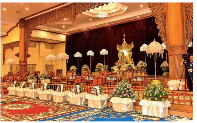 CHAIRMAN of the State Administration Council Prime Minister Senior General Min Aung Hlaing and wife Daw Kyu Kyu Hla attended the Dhamma preaching ceremony to mark Buddha Day on the full moon day of Kason at Sasana Maha Beikman in the precinct of Nay Pyi Taw Uppatasanti Pagoda yesterday evening.