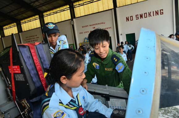 Likewise, a total of 680 trainees from 17 basic aviation youth courses (senior level and junior level) carried out field studies on the daily operations of the Tatmadaw (Air) in the flight line and air traffic control department at the pilot training school. They were also trained to drive the RC stimulator and RC aircraft and helicopter drones under the supervision of trainers.