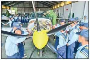 Likewise, a total of 680 trainees from 17 basic aviation youth courses (senior level and junior level) carried out field studies on the daily operations of the Tatmadaw (Air) in the flight line and air traffic control department at the pilot training school. They were also trained to drive the RC stimulator and RC aircraft and helicopter drones under the supervision of trainers.