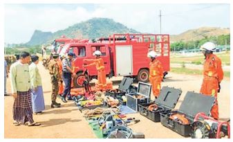 Ministers, Commanders and departmental officials from respective regions and states observe the preparation for natural disasters at the Myanmar Fire Service Department Headquarters in Mayangon Township in Yangon, Phapun, Bogale, Shwe Thaung Yan, Chaung Tha, Ngwe Saung, Pathein, Thaboung, Hinegyi island and Mawlamyinekyun townships in Ayeyawady Region, factory and vehicle department of the Mandalay City Development Committee, Disaster Management Department in Chanmyathazi Township, relief storage facility, the Central Warehouse (Mandalay), Central Medicine Warehouse in Maha Aungmyay Township in Mandalay and PyinOoLwin Township on 8 and 9 May.