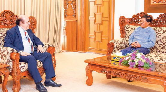 UNION Minister for Foreign Affairs U Than Swe received former president of the Foreign Correspondent Club of Japan (FCCJ) Mr Khaldon Azhari at the Parlour of the Minister’s office, Ministry of Foreign Affairs, yesterday morning.