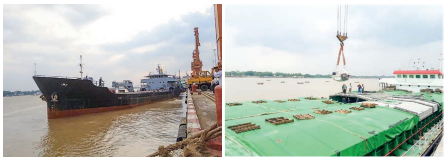 Under the close supervision of the Myanmar Port Authority, military vessels (Mottama, Maha Bandoola, Pyitawaye 2, and Chindwin), supply vessels (603 and 604), MV Aquarius, MV Fortune, MV Sun Shine, and the MCL-5 vessel have shipped a total of 11,294.8 tonnes of relief supplies and, Khine Khine Phyo 33 and 34 vessels 249,762 gallons of diesel and 199,886 gallons of Octane 92 from the TMT jetty to Sittway since 16 May.