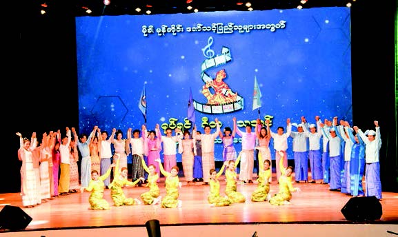 The concert was opened with the performance of the Myanmar traditional orchestra and modern melody. The Myanmar Theatrical Association performed the maiden dance along with the Rakhine traditional drum's play. Artistes presented songs.