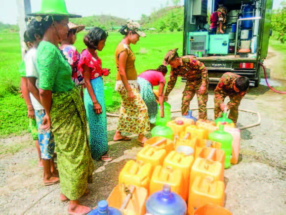 TATMADAW rescue teams cooperate with local security forces and social welfare teams at the storm affected areas.