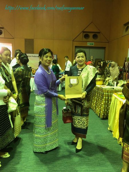 The Annual Tea Party 2023 for the Female Diplomatic Community took place at the ICTC in Vientiane, Laos, on 17 November 2023. The Myanmar Embassy showcased a national culture shop, exhibiting gems-decorated paintings (made of Myanmar mineral jewel pieces), Myanmar golden embroidery, silvery embroidery images, purses, and traditional Myanmar food.