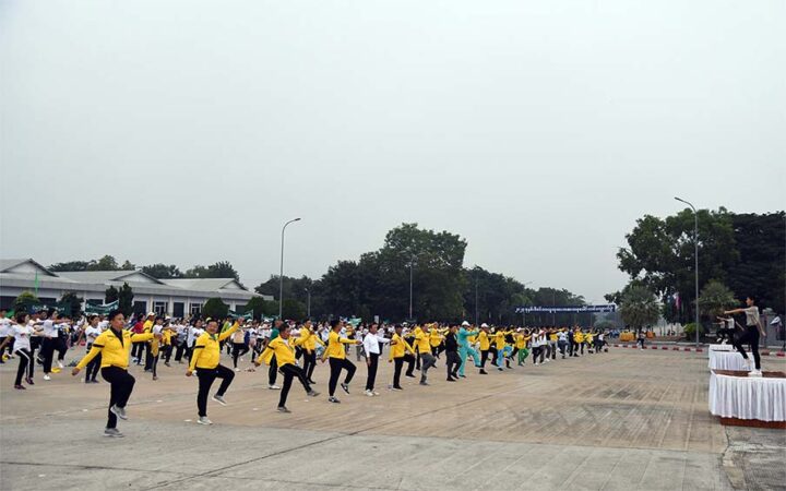 Participants in the walking event enjoyed strolling along the designated paths at Wunna Theikdi Stadium, engaging in group physical fitness exercises, and joining in Physical Fitness Dance Exercises. Additionally, Department of Sports and Physical Education officials distributed water bottles and refreshments.