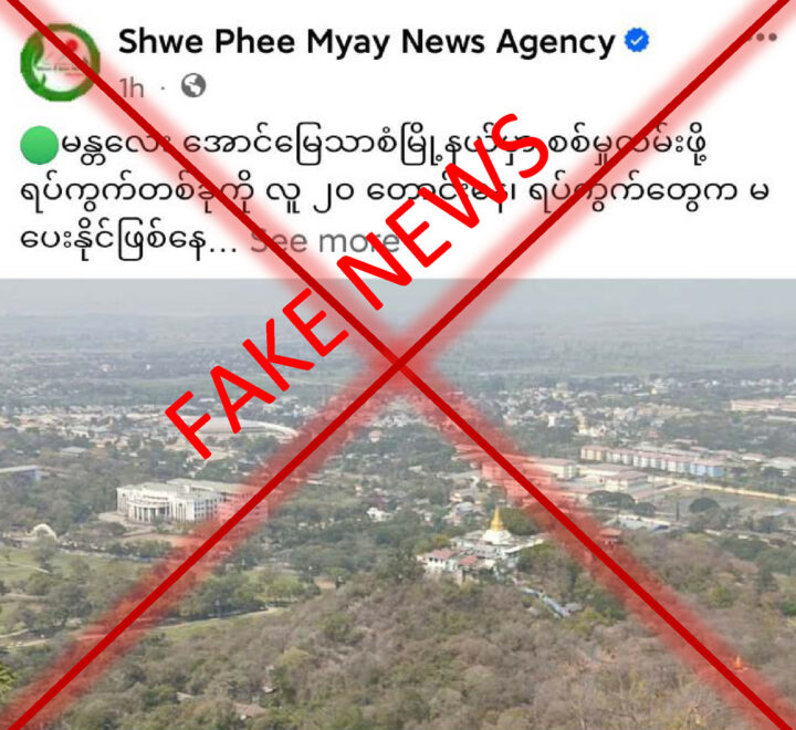 According to a security official, the news about the gathering of 20 people from each of the wards in Aungmyaythazan Township of Mandalay Region is invalid. As the people know, the malicious media have been spreading misinformation and disinformation daily to instil fear in the people since the People’s Military Service Law came into force.