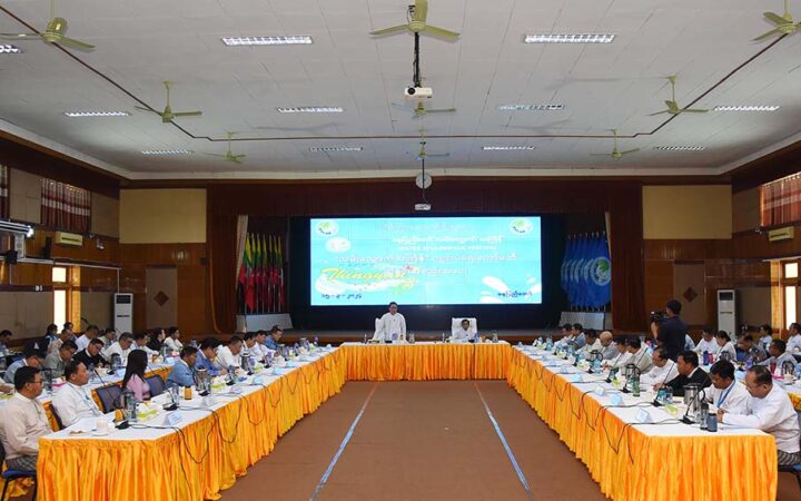 Then, Committee ViceChair Mayor U Than Tun Oo, joint secretary of committee Permanent Secretary of Information Ministry U Myo Myint Maung, project director of Brilliant Aura Co Ltd, Coordinator for the Walking Thingyan Deputy Director-General of MRTV U Myo Myint Aung and relevant departmental officials discussed the successful holding of Nay Pyi Taw walking Thingyan in four zones such as ethnic Thingyan, Thingyan with refreshment services, ministries’ Thingyan and youths’ Thingyan, designated locations for pavilions, security measures, access to water, electricity, regulatory matters and healthcare services.