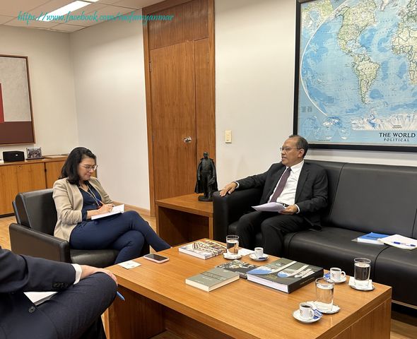 BRAZIL has expressed its support for Myanmar's establishment of a diplomatic school. Moreover, discussions are underway regarding potential diplomatic exchange visits between the two nations, as reported by the Ministry of Foreign Affairs. On 14 March, Myanmar Ambassador to Brazil U Aung Kyaw Zan and acting head of the Rio Branco Institute under the Brazilian Ministry of Foreign Affairs Ms Mariana Moscardo convened the meeting at the institute to deliberate on bilateral diplomatic collaboration.