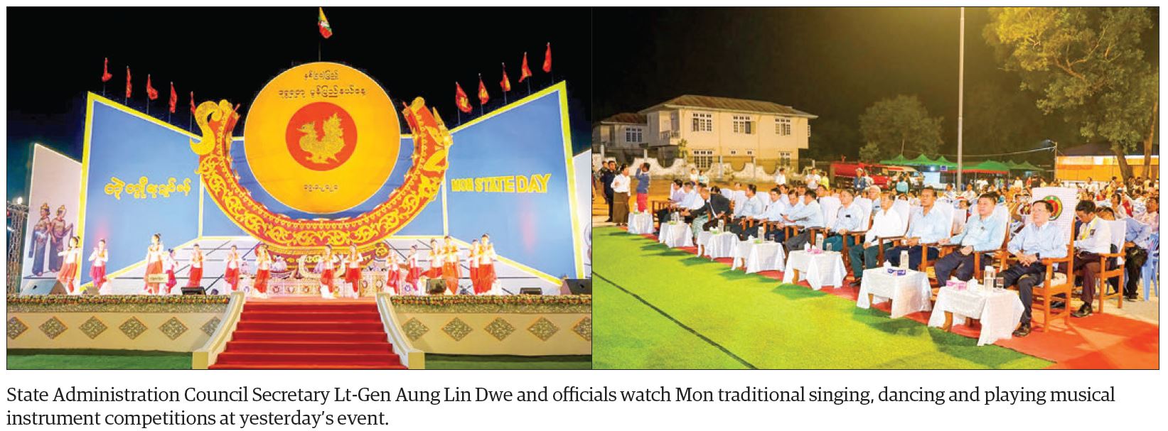 Additionally, the group led by Lt-Gen Aung Lin Dwe enjoyed Mon traditional singing, dancing, and playing musical instrument competitions as part of the entertainment provided at the event.