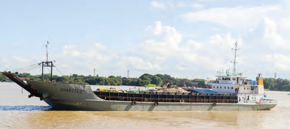 The ferry also carried lamp posts (831.5 tonnes of total weight) provided by the Yangon Electricity Supply Corporation for electrification project, solar panel and related equipment, 2 ambulances donated by the Yangon Region government, and 4 cars to be used for township development tasks.