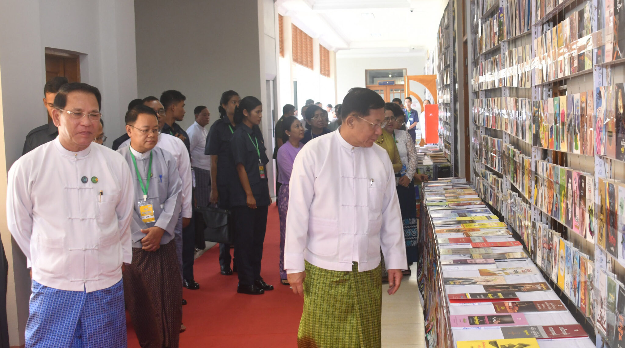 The ceremony to share K12,762,438 billion and 85,540 books was presented at the cash and book donation ceremony on 10 April, to regions and states, including Nay Pyi Taw Council Area, followed. The Senior General presented K230 million for repairs and reopening of 46 libraries in 14 regions and states, K405 million for the construction of 27 new libraries, and 67,780 books for people to the chairman of Myanmar Libraries Development Cooperation Committee Union Minister for Information.