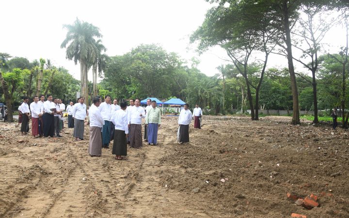 During the inspection, the Union minister instructed officials to cooperate with the relevant department to remove the vast trees in the area of the three-storey RC Sarso Beikman construction site and also observed the three-storey building that will be upgraded into the Sarpay Beikman library.