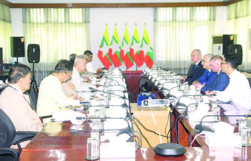 CHAIRMAN and members of the Myanmar Institute of Strategic and International Studies (MISIS) received the election observer delegation of Belarus, led by Mr Alexei Bashan, Deputy Chairman of the Central Election Commission of the Republic of Belarus, at the MISIS office in Yangon yesterday.