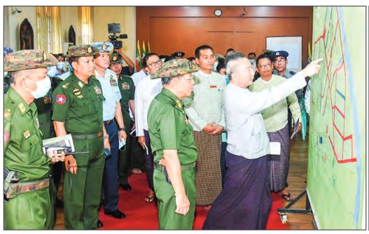 CHAIRMAN of the State Administration Council Commander-in-Chief of Defence Services Senior General Min Aung Hlaing, accompanied by Council members General Maung Maung Kyaw and Lt-Gen Moe Myint Tun, Joint-Secretary Lt-Gen Ye Win Oo, Union Ministers U Win Shein and U Aung Naing Oo, Chairman of Yangon Region Administration Council U Hla Soe, Commander-in-Chief (Navy) Admiral Moe Aung, senior military officers from the Office of the Commander-in-Chief, Commander of Yangon Command Maj-Gen Nyunt Win Swe and officials, inspected Shwelinpan industrial zone in Hlinethaya Township and Shwepyithu industrial zone yesterday morning.