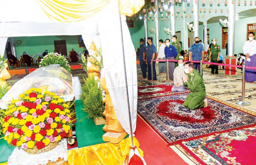 STATE Administration Council Chairman Commander-in-Chief of Defence Services Senior General Min Aung Hlaing paid homage to the remains of Presiding Nayaka of Zaygon Pariyatti Buddhist Learning Centre in Pyinmana of Nay Pyi Taw State Ovadacariya Abhidhaja Maha Rattha Guru Dr Bhaddanta Kavisara yesterday afternoon.
