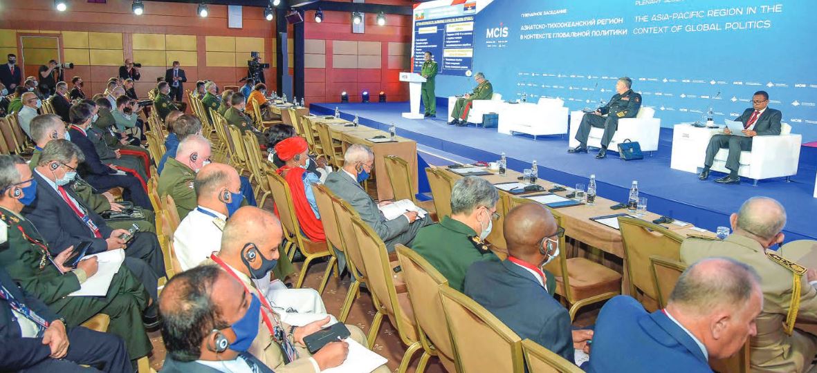 Deputy Minister of Defence of the Russian Federation Colo-nel General Alexander V. Fomin led the discussions with the participation of Chief of the General Staff of the Armed Forces of Russia Army General Valery Gerasimov, Colonel-General Wei Fenghe from the People’s Republic of China, Deputy Prime Minister and Minister of Defence of Qatar Dr Khalid Bin Mohammad Al-Attiyah, Minister of Defence of Belarus Viktor Khrenin, President of the International Committee of the Red Cross Peter Maurer and former President of Afghanistan Khamid Karzai discussing in the respective sec-tors while those who could not attend the meeting took part in the discussions online.