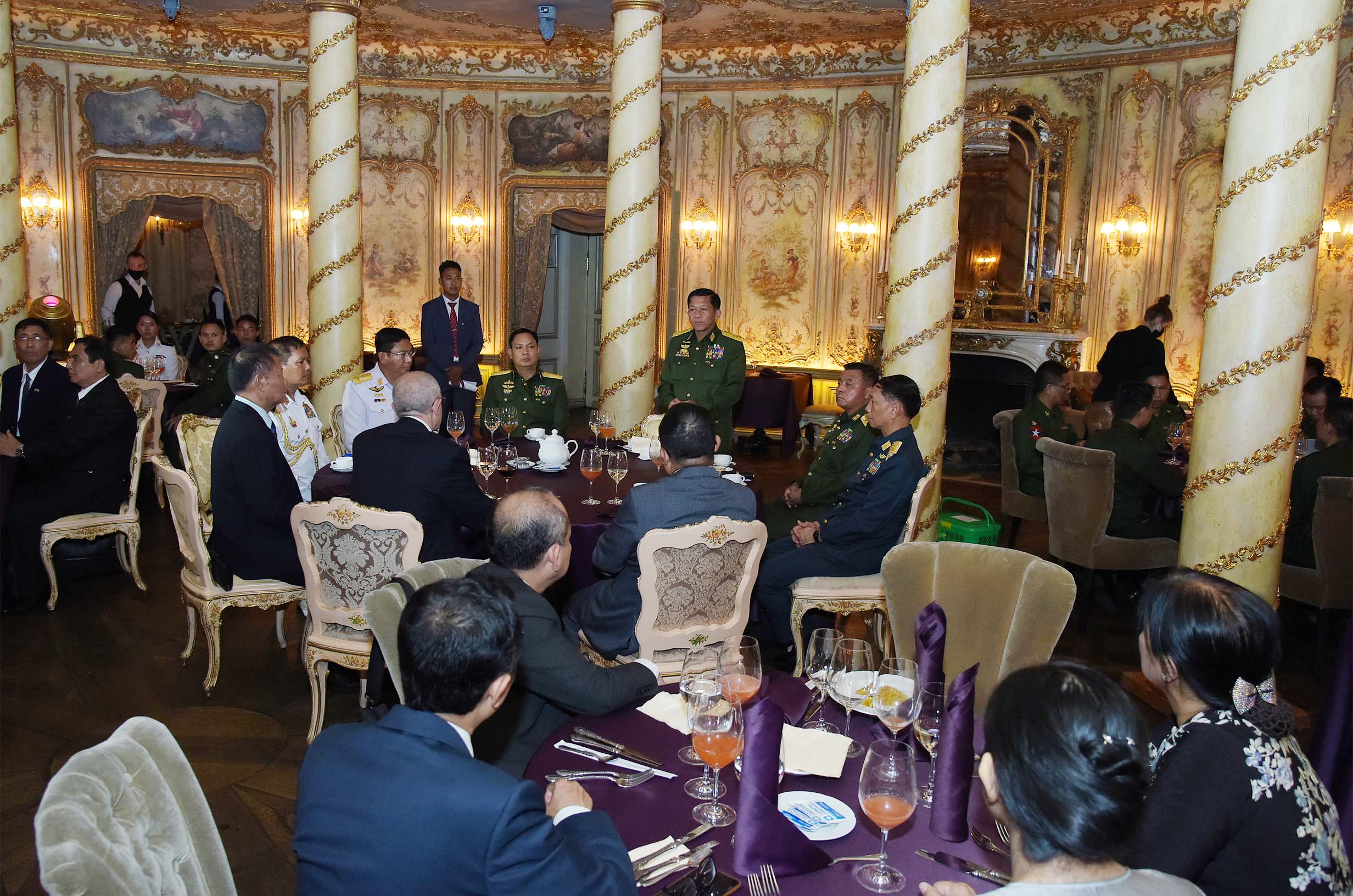 State Administration Council Chairman Commander-in-Chief of Defence Services Senior General Min Aung Hlaing on 23 June afternoon met with families of the Myanmar Embassy to the Russian Federation and the Office of Myanmar Military Attaché (Army, Navy and Air) and scholarship trainees at Turandot restaurant in Moscow.