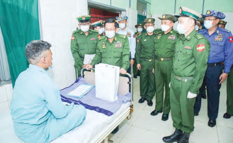 Later, the Senior General and wife and party proceeded to the local military hospital in Lashio where he greeted the officers and other ranks receiving treatment, comforted them and presented foodstuffs.