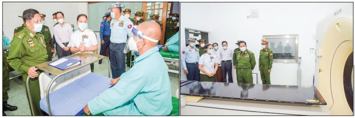 The already-opened three-storey centre was built in the 2019-2020 financial year during the tour of the Senior General in June 2019. The LA machine installed in the centre is the Varian Series Vital Beam made in the United States of America. The machine was also installed with a 16 Slice CT Simulator. As the cancer treatment must be performed with the team comprising specialists of a multidisciplinary approach, surgery, radiation, X-ray and heart. At present, the military hospital in Aungpan will give cancer surgical treatment with radiation therapy to the Tatmadaw members and families as well as local people from Shan and Kayah States. Those cancer patients will be provided comprehensive treatment in a single place. The hospital has given cancer treatment and related diseases to 242 officers, other ranks and families and 276 local people, a total of 518 within one and a half years.