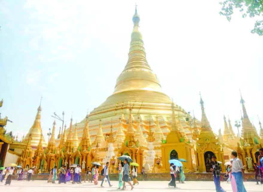 Pilgrims were asked to strictly follow the COVID-19 prevention measures and enter the Disinfection Chamber when they arrived at the pagoda. Hand washing and body temperature measurements are carried out by the Shwedagon Pagoda Board of Trustees.