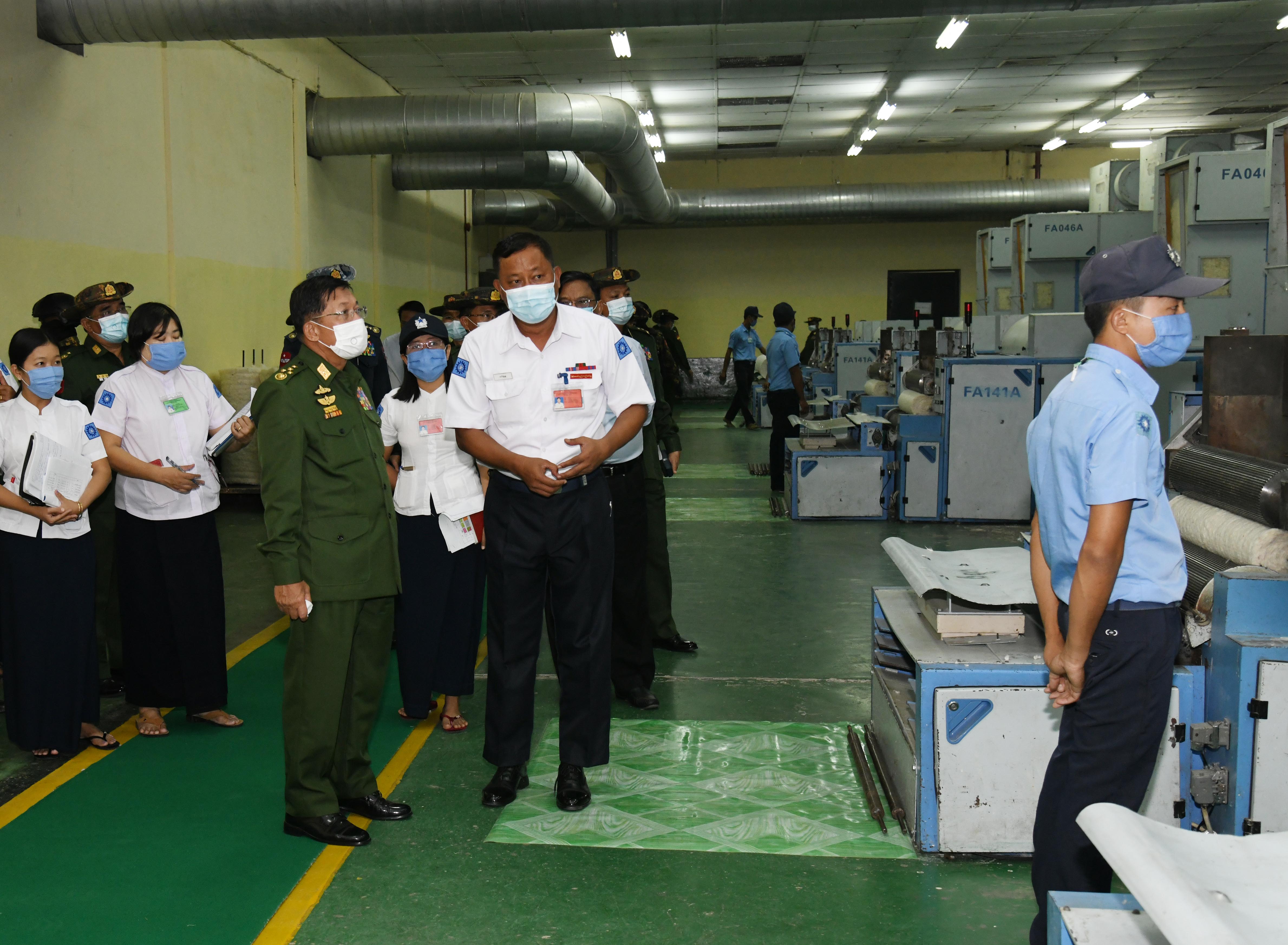 In his response, the Senior General pledged to add more staff for operating the factory at full capacity. More buildings will be constructed for staff. Efforts must be made for meeting the target of production and manufacturing surplus products more than the demand of the Tatmadaw. It is necessary to fulfil the needs of the staff. School uniforms must be produced to be sold at cheap prices for teachers and students. Priority must be given to the manufacturing of more quality textile products of the factory. Quality cotton strains must be imported to grow them through correct cultivation methods. Necessary raw materials and machinery will be provided to the factory for producing 2/80 threads at home. Products must be of better quality if prices of goods are equal to others and prices of products must be cheap if the quality of goods is equal to others. And, he attended to the needs of staff welfare.