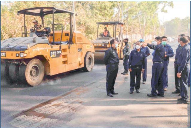 Then, the Mayor and party viewed round placing of asphalt concrete near Pyinmabin Katkyaw Sutaungpyae Pagoda on Yangon-Pyay Road. He also inspected the clean and tidy work around Bayintnaung Road, Hline Township.