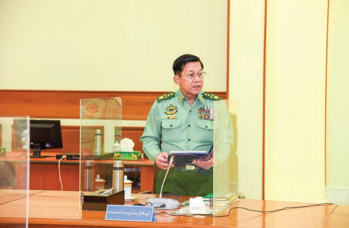 In his supplementary discussions, the Senior General said, “In the past period, we controlled the conflicts with least bleeding and the least grudge. Especially, I honestly admit that we could not totally protect most of the people. It is because members of the Myanmar Police Force and Tatmadaw members were deployed in necessary sites across the nation. Terror acts are happening in some townships of Kayah and Chin states and Sagaing region. We are controlling these events as much as possible. Officials from the administrative bodies were assassinated. These events happened in 109 townships of regions and states 272 times and 282 persons were assassinated. Moreover, educational staff and health staff were killed. In this regard, they killed 30 teachers and set fire to schools 504 times. They committed killing health staff and attacked them. It is necessary to take an adequate for effective managing education and health care services for socio-economic development of the people. So, Council members need to consider them. I thanked them for their support. But, the workload will be rather heavier. Now, we could control the COVID-19 but we found the Omicron variant. So, we have to take special care of the disease. Hence, it is necessary to control living disciplines and manage the prevention and treatment measures and fulfilling of necessary equipment, medicines and materials for controlling the disease. So, we have to strive for ongoing tasks with utmost effort. It will cost a large sum of money for the projects. So, we have to uplift the State economy. We have to produce sufficient agriculture and livestock products, foodstuff and personal goods at home. So, the policy was not totally imported these products abroad. The period after February was concerned with the government of the State Administration Council. As we strictly managed all export and import measures, we could show some US$640 million of trade surplus. Currently, we have US$99 million of trade surplus till January. It is sure to have the trade surplus in February. Primarily, if farmers and rural people increase the production of goods, we are ready to export them to neighbouring countries’ markets. China, Bangladesh and India are our markets for agriculture and livestock products. They are our large market. By fulfilling the needs of farmers, if they have good income and good businesses, their socio-economic life will improve. So, they can learn. They have just the least reasons for missing the chance of learning due to lack of money. On the other hand, the country will have income and tax. So, I emphasize the internal economy. In this regard, foreign countries criticized me. We extremely encourage internal businesses. I think it may be destructive acts. But, our National Defence and Security Council needs to know that we are building internal strength. The strength of the nation lies within. It cannot be found anywhere. We have to seek internal strength. I’d like to report that I will try to build the internal economic strength, internal political strength and internal defence strength in the limited time.”