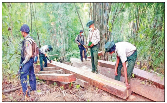 The combined inspection teams led by the Forest Department under the management of the Sagaing Region Illegal Trade Eradication Task Force conducted inspections in the region and confiscated 3.6568 tonnes of illegal teak (estimated value of K1,097,040), and action is taken under the Forest Law.