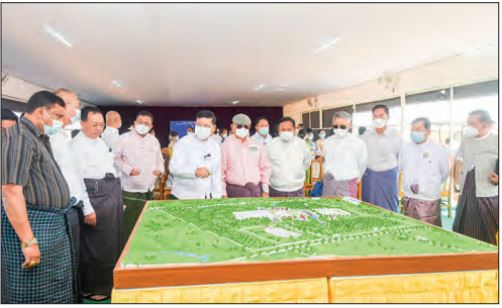 Similarly, the retired Tatmadaw officers, state/region Chief Ministers and wives visited the Buddha image construction site and the deputy chairman of the pagoda construction committee Lt-Gen Kan Myint Than clarified the work processes to convey the marble rocks, placement of the thrones and curving processes with the use of modern machines.