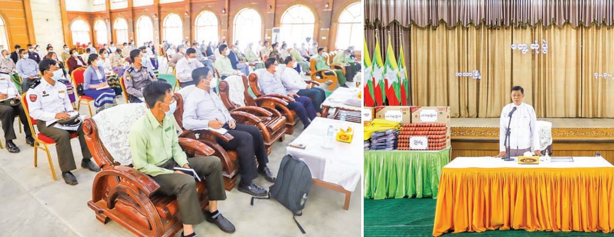 Shwebo District Administration Body Chairman U Myo Oo explained the situation of their regions and the Union minister coordinated the discussion. The Union minister provided food aids for the district and township-level departments to the respective district and township administration bodies’ chairpersons.