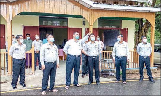 Afterwards, the Union minister and party arrived at the construction site of the old cable-stayed bridge Panmawady Bridge (Myinkaseik) on the Pathein-Kankon-MyinkaseikMyaungmya Road, which is to be upgraded to a 1,260-foot-long concrete bridge and officials briefed the construction work at the briefing hall.