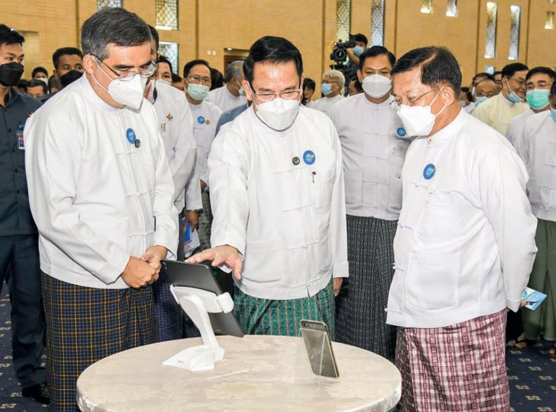 Union Minister for Information U Maung Maung Ohn reported on the development of the media sector, including the initiation of the MRTV App & Web.