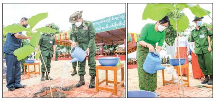 Likewise, relevant military commands held the monsoon tree-growing ceremonies—11,435 plants in Nay Pyi Taw Command, 18,128 in Northern Command, 10,497 in North-East Command, 13,277 in Eastern Command, 14,300 in Eastern Central Command, 29,600 in Triangle Region Command, 12,095 in South-East Command, 12,474 in Coastal Region Command, 15,128 in Yangon Command, 6,355 in South-West Command, 17,874 in Western Command, 10,065 in North-West Command, 26,666 in Central Command and 13,909 in Southern Command.