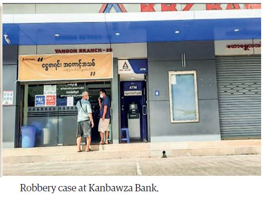 • On 22 October, he gave one pistol, three homemade bombs, two vehicles, and two unregistered motorcycles to STF terrorist group to rob the KBZ bank in Botahtaung Township.