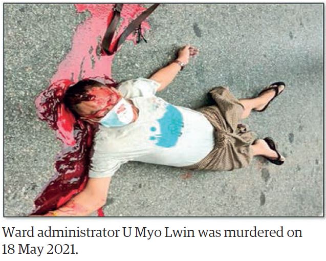 • On 27 May, he handed over one pistol to Thakayta PDF and they killed one innocent person in the Manpyay ward of Thakayta Township.