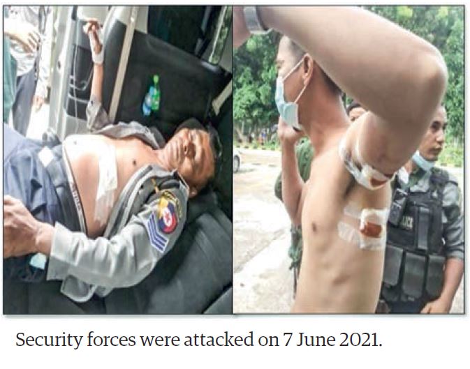 • On 25 August, he gave one pistol to STF and attacked in 106 ward in Dagon Myothit (South) Township with one civilian being injured.