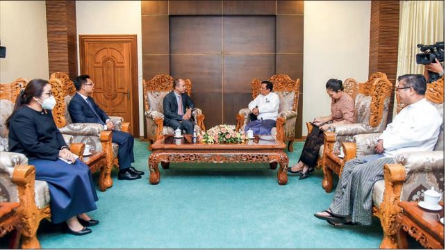 U Kyaw Myo Htut, Deputy Minister of the Ministry of Foreign Affairs received Cambodian delegation led by Dr Kung Phoak, Secretary of State of the Ministry of Foreign Affairs and International Cooperation and Head of the Office of the Special Envoy of the ASEAN Chair at 11:30 am on 9 June 2022 at the Ministry of Foreign Affairs, Nay Pyi Taw.