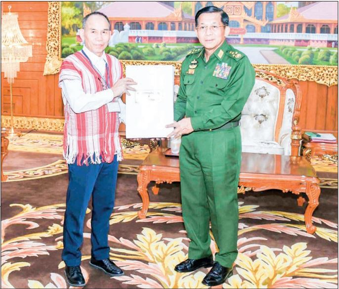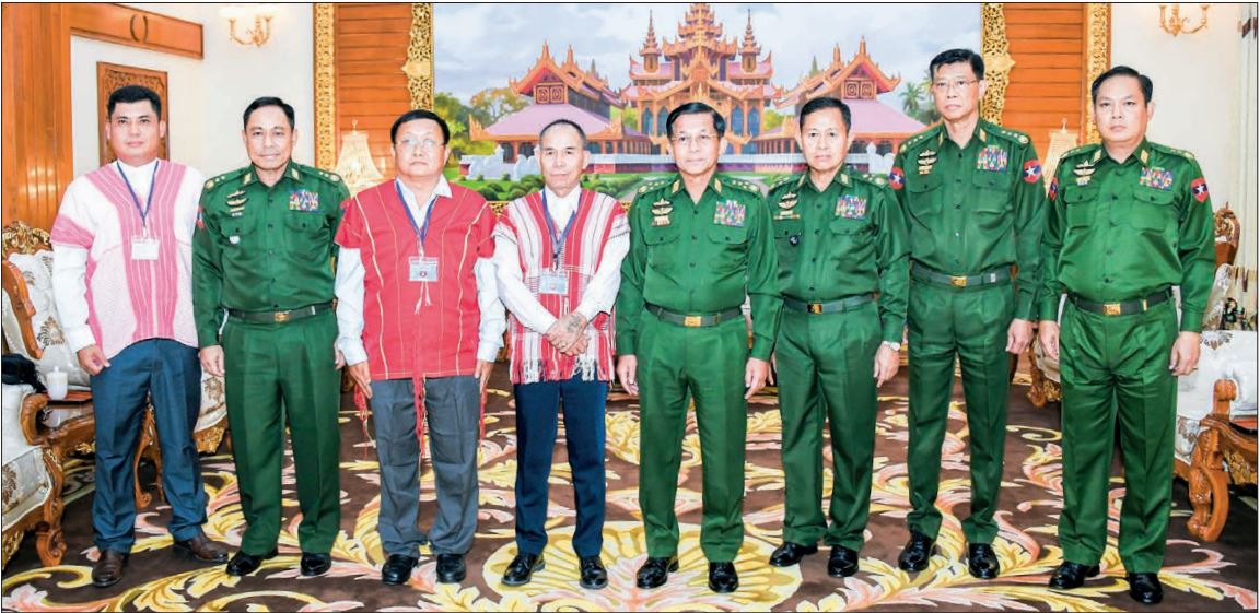 CHAIRMAN of the State Administration Council Commander-in-Chief of Defence Services Senior General Min Aung Hlaing received the peace delegation led by Commander-in-Chief Saw Steel of Democratic Karen Benevolent Army-DKBA at the parlour of Bayintnaung Villa in Nay Pyi Taw yesterday afternoon to talk about peace issues.