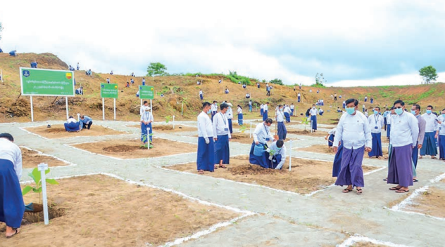 Afterwards, officials and departmental staff grew the Mesua ferrea saplings, teak saplings, eucalyptus saplings, Siamese cassia saplings, Beechwood saplings, Tabebuia aurea saplings, Thapyay saplings, Bauhinia acuminata saplings, Taungmayoe saplings, Mahogany saplings, Mahua saplings, gold mohur saplings, Pyinma saplings, mango saplings, drumstick saplings, guava saplings in the designated places, and the Union minister and the party viewed the process, it is learnt.