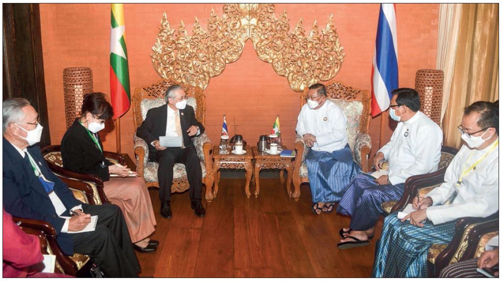 At the meeting, both sides cordially exchanged views on matters pertaining to the further enhancement of the existing friendly relations and multifaceted bilateral cooperation between the two countries, maintenance of peace and stability, and security along the Myanmar-Thai border, the implementation of the ASEAN five-point consensus as well as closer collaboration at regional and multilateral arenas.