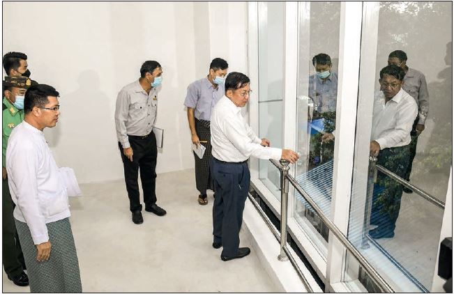 The Senior General inspected the construction of the nine-storey extended building of Pathein General Hospital and stressed the need to take emergencies into consideration. It is necessary to supervise the timely completion of construction for commissioning it into service.