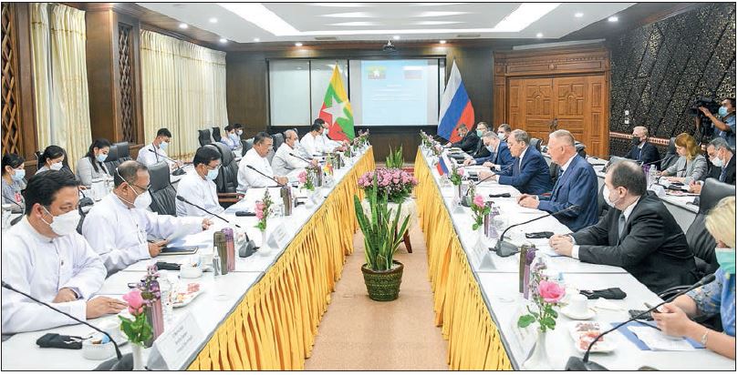 Subsequently, the Myanmar-Russia Bilateral Talks cochaired by the Union Minister for Foreign Affairs of Myanmar and the Minister of Foreign Affairs of the Russian Federation were held. The meeting was attended by the Deputy Foreign Ministers and senior officials