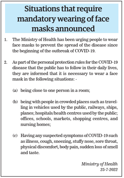Submitted by moiuser on 15 August 2022 Situations that require mandatory wearing of face masks announced