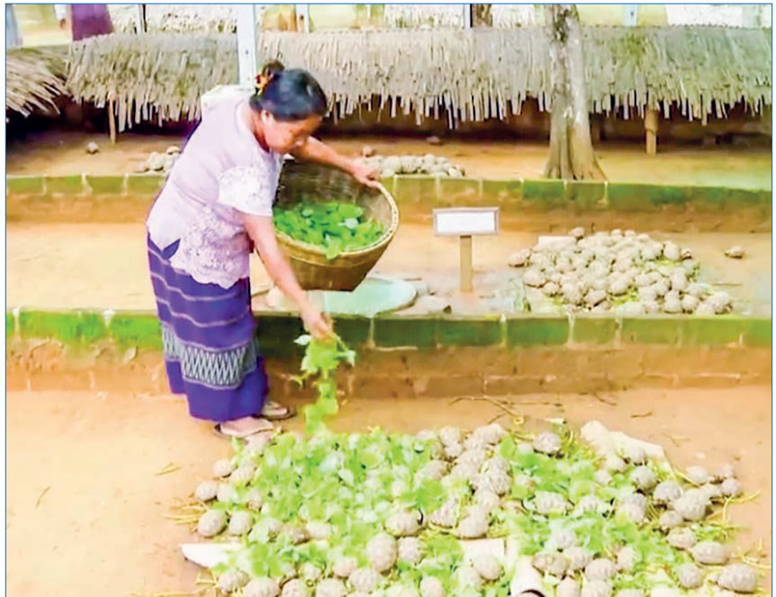 In previous years, during the Mann Shwesettaw Buddha Pujaniya Festival, small natural stone rocks were made and displayed in the farm cage in the gallery so that pilgrims could study the star turtles.