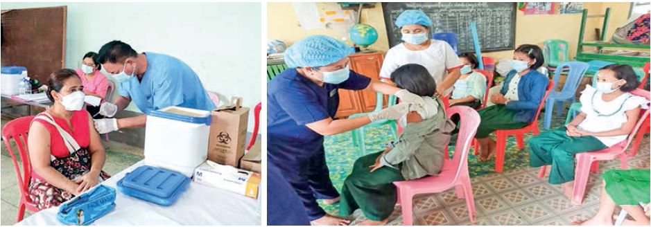 COVID-19 vaccine is administered daily to target groups regardless of race or religion, including Buddhist monks and nuns, local people over the age of 40, students, religious leaders, prisoners, people with disabilities, ethnic armed groups, people with chronic diseases, people in IDP camps and over 12-year-old students, respectively.