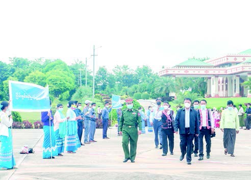 The PNLO, LDU and ALP delegations were seen off by officials and members of the National Solidarity and Peacemaking Negotiation Committee, ethnic people of the Department of Fine Arts, departmental officials and locals by holding miniature National flags and posters bearing: “Perpetual peace is the real aspiration of the people”, “Achieving peace is the true desire of all citizens”, “Let’s hold talks for peace in the Union”, “Only the ethnic nationalities are in unity, stability, peace and tranquillity will be achieved” at the Horizon Lake View Resort, Nay Pyi Taw and the Nay Pyi Taw Airport.